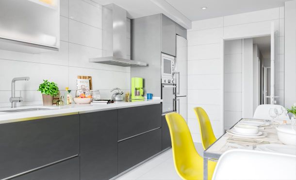 XL Vía Hispanidad incorpora cocinas espaciosas completamente equipadas, amueblamiento de diseño y alta calidad, así como dotación completa de electrodomésticos.